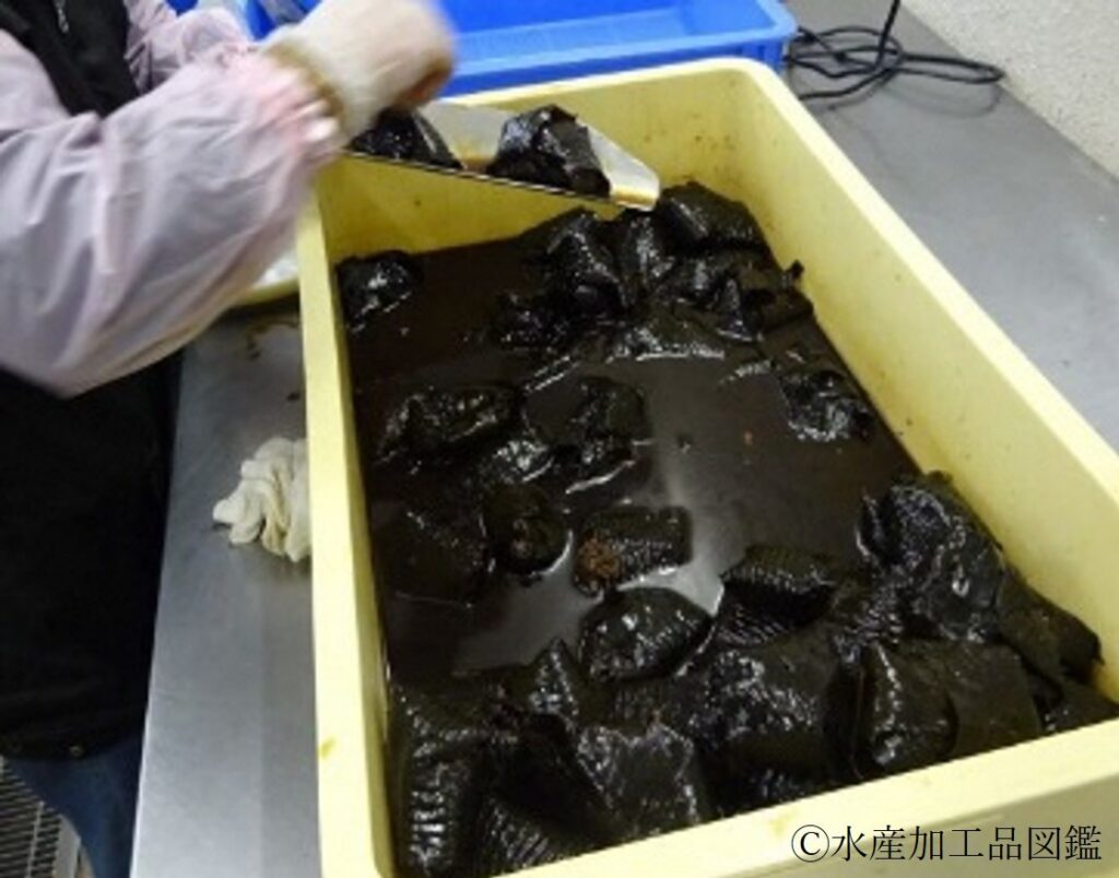 国産の養殖フナと三重県鳥羽産の干しアラメを用いた製造例を示す。