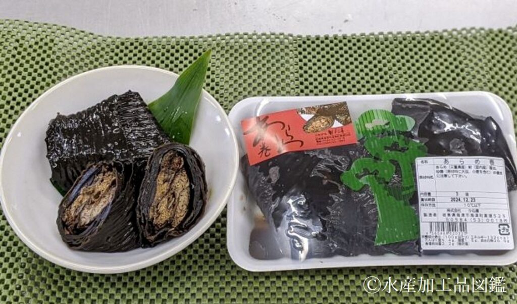 「鮒のあらめ巻」とは、素焼きにしたフナを海藻のアラメ(荒布)に巻き、醤油、砂糖、酒等で柔らかくなるまで炊き込んだ昆布巻きの一種である。「あらめ巻き」の主たる食文化圏は三重県であり、伊勢志摩ではイワシ、東紀州ではサンマ、北勢ではハゼといった地域の魚が用いられ、正月に欠くことのできない伝統料理である。