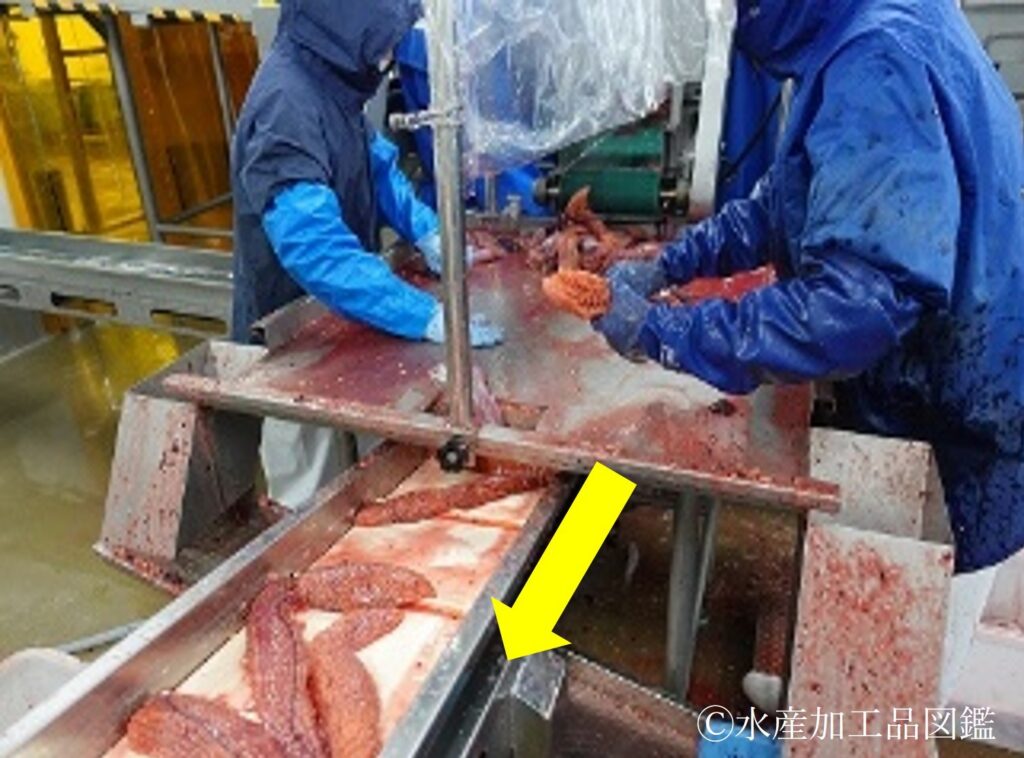 写真2 手作業による内臓採取(佐藤水産(株)提供)