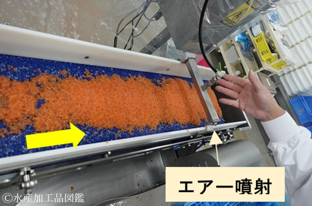 写真11 水切りの効率アップのエアー噴射(佐藤水産(株)提供)