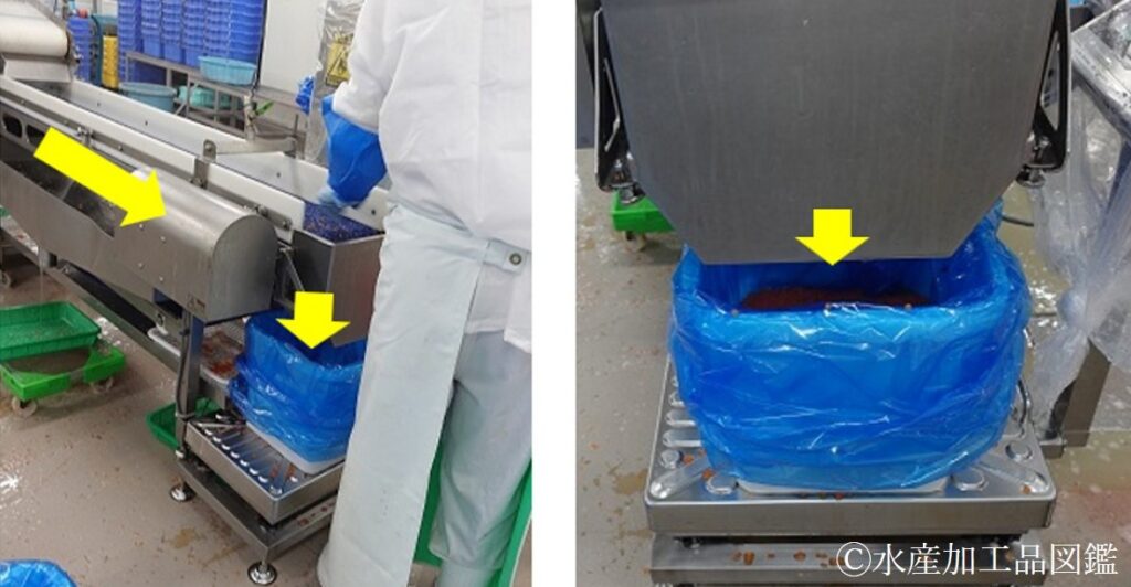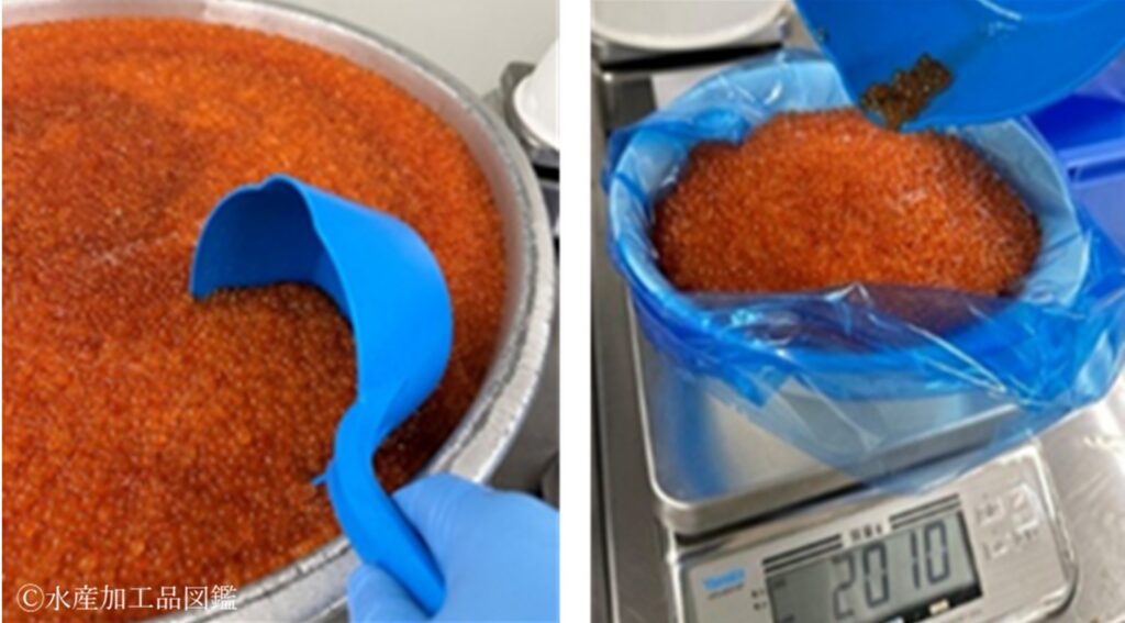 • 異物検査、冷凍・保管 これらの工程は、上記①醤油いくらと同様に行う。