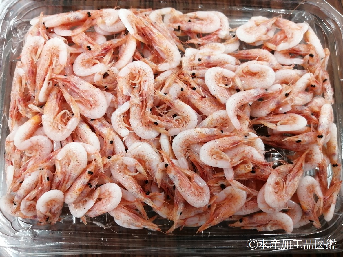 沸騰した塩水で煮熟することにより、エビに含まれるアスタキサンチンが発色し鮮やかな桃色を呈する。煮熟水中の塩分は約8%と高い場合が多いが、加熱後の柔らかさを残すためにできるだけ短時間で煮熟している。製品中の塩分は約3%となるが、製品の水分が高いため冷蔵での保存性はあまり高くない。