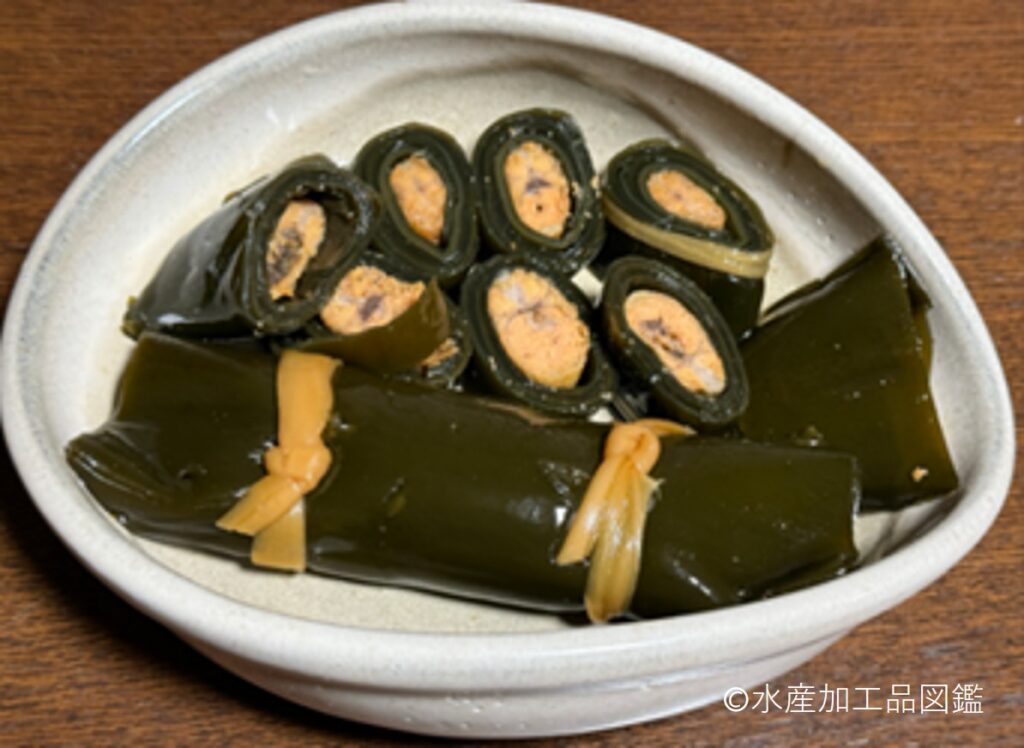 鰊の昆布巻き、ししゃもの昆布巻き、鮭の昆布巻き、さんまの昆布巻き、帆立の昆布巻き等