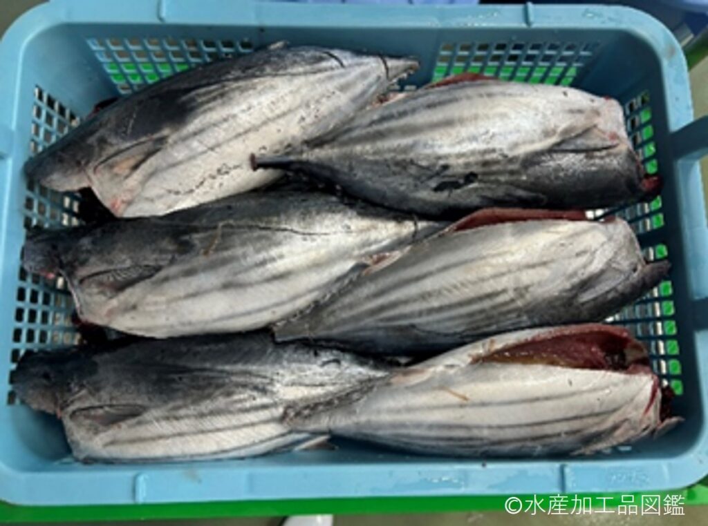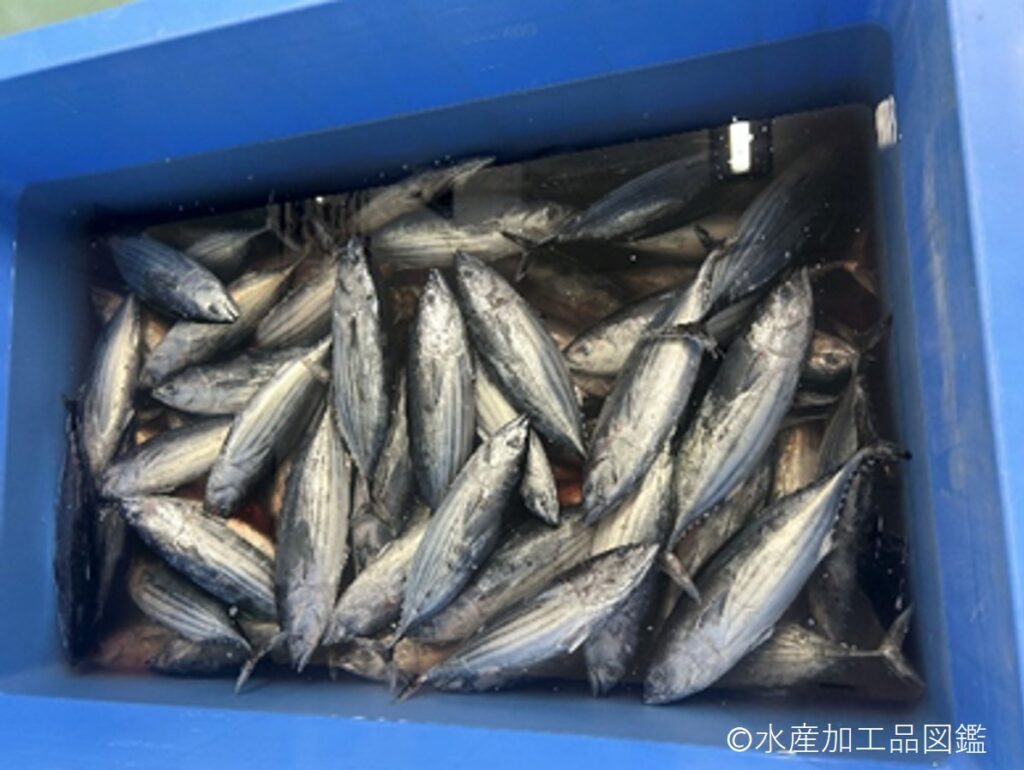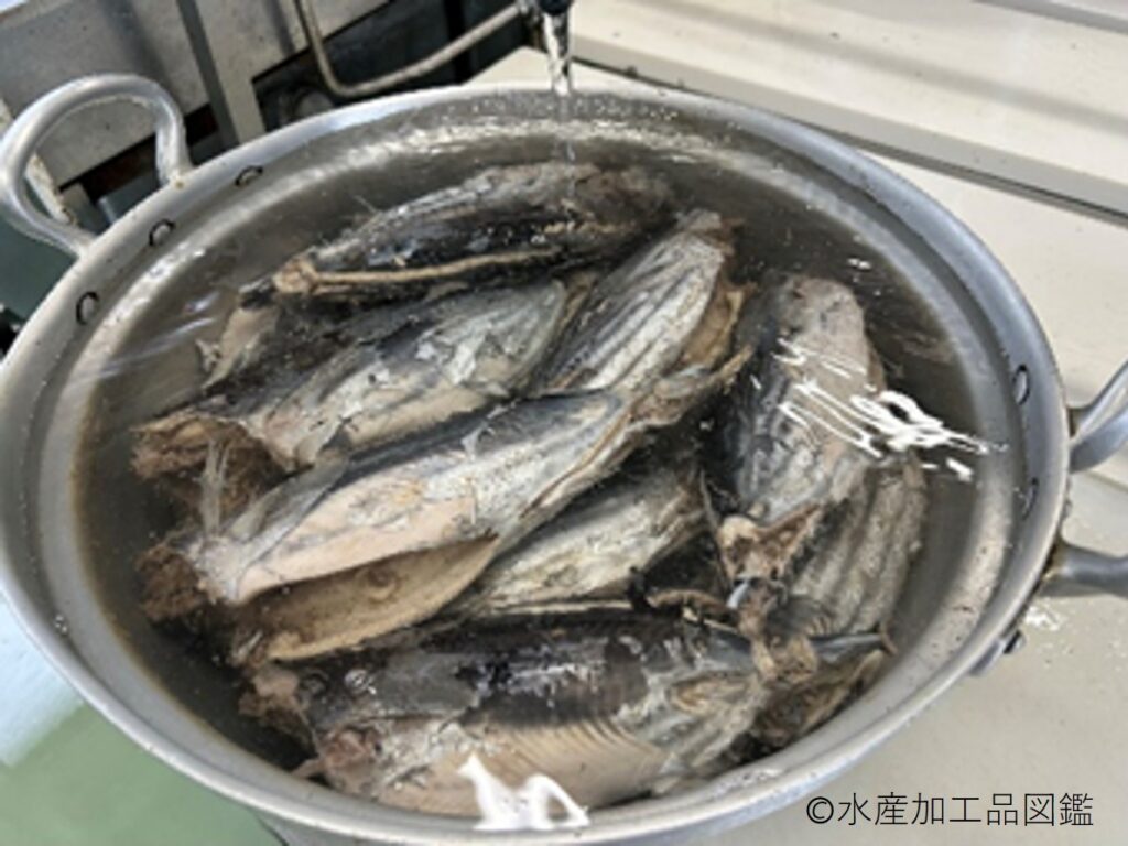 - 解凍 貯蔵しておいた冷凍カツオを前日の夜から冷蔵室で解凍する。製造当日の朝、半解凍程度になるよう流水解凍で調節する。