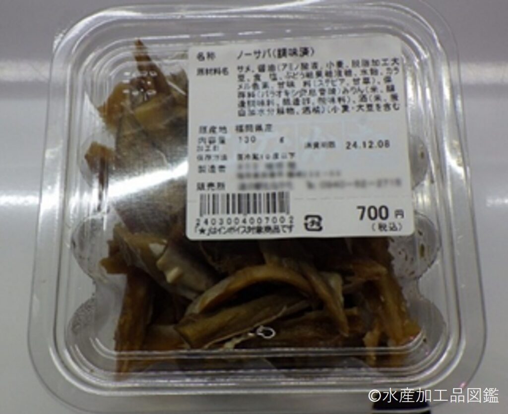 「のうさば」は、冬期にフグ延縄漁などで混獲されるホシザメを乾製品としたものである。延縄の方言である「のう」と鮫が変化した「さば」が合わさって「のうさば」と呼ばれるようになった。