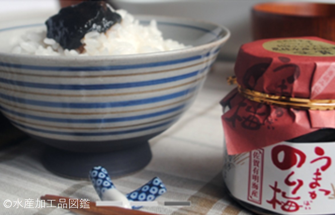 ここでは、佐賀県有明海で養殖されたスサビノリの佃煮のうち、秋芽網期と冷凍網期の一番摘みのノリだけを使い、完熟した紀州南高梅と組み合わせてノリの風味を引き立たせた製品である「うまかのり梅」を紹介する。この製品は、佐賀市漁村女性の会が商品開発を行い、現在は、大手百貨店やコープ、市内の直売所等で商品を販売している。本加工品は、乾海苔の品質で日本一を自負する生産者が、佐賀のりの美味しさを広めようと、本県伊万里産の完熟南高梅との組合せを実現したことがポイントである。