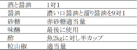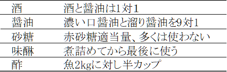 ▪ あゆ醤油煮・飴煮の調味液の例