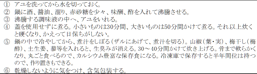 ▪ あゆ醤油煮・飴煮の炊き方