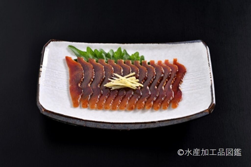 「酒びたし」 は、一般的にはスライスした身を40~200g入りで真空包装する。おみやげ用等には、半身ずつ皮、腹側を取り除き薄くスライスした状態で魚の姿を形取り、真空包装したものもある。
