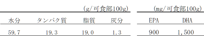 表1 さんま開き干しの一般成分及び脂肪酸含量 日本食品標準成分表(八訂) 増補2023年(2023)
