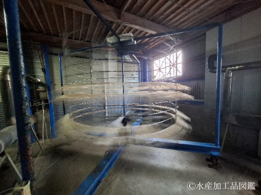 剥皮機やロール機、温風・冷風乾燥機が用いられる。