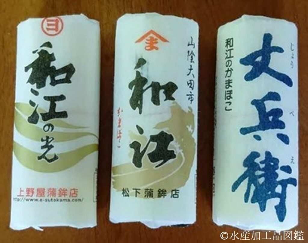 島根県では、クラカケトラギス、キダイ、カナガシラなどが原料として用いられてきたが、近年ではスケトウダラ冷凍すり身が使われることが多い。愛媛県や高知県で使われているエソは島根県ではあまり使われない。