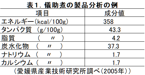 「儀助煮」は、ライセンスの関係で商品名として使用することはできない時期があったので、各社は儀助煮の製造方法を活用した製品を開発し、「二名煮ふたなに」や「五色煮ごしきに」、「小浜煮こはまに」等の異なる商品名で販売している写真1。そのため、現在、「儀助煮」という名の商品は流通していない。