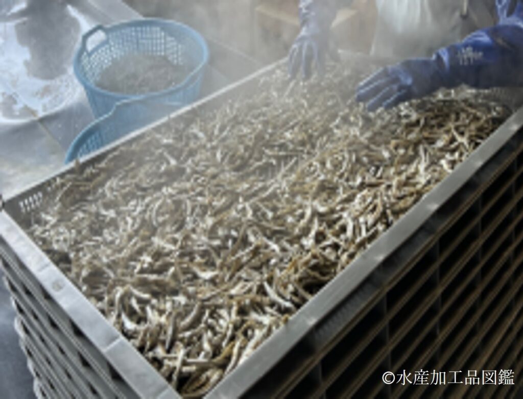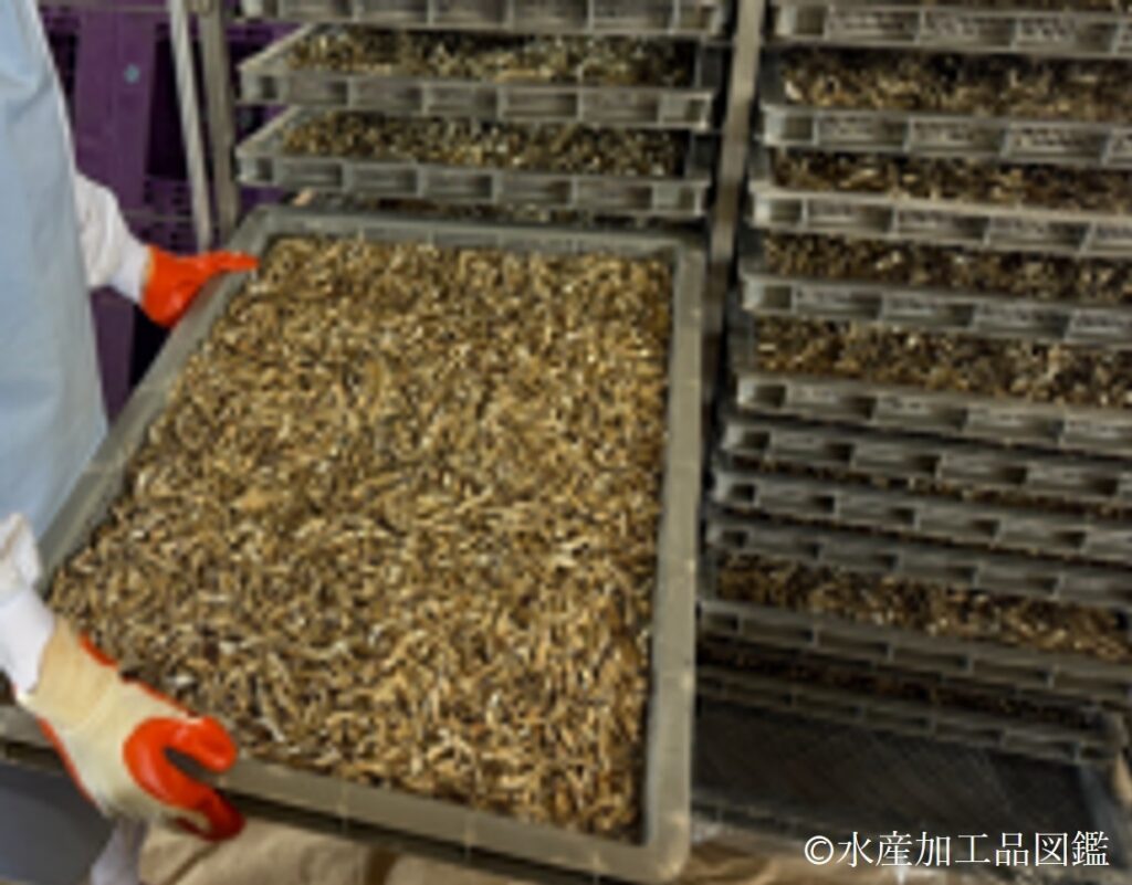 ピーク時の1970年代の生産量は、年間およそ500tを生産していたと思われる。その後、若年層の魚離れや“やわらか志向”といった市場傾向により徐々にその消費は減少したが、ここ数年は“健康志向”といった傾向から、この小魚珍味も再び見直されるようになっている。