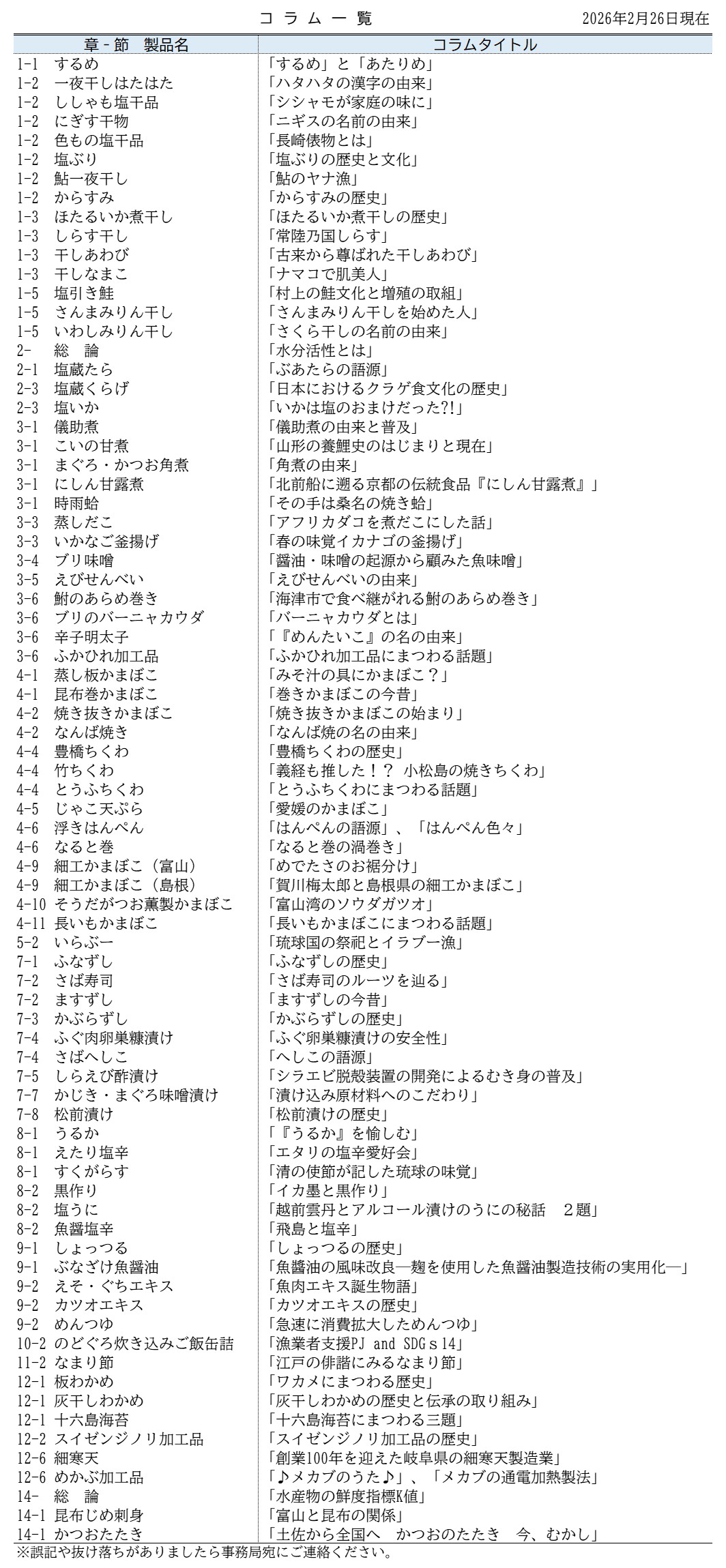 コラムは「コラム一覧」の各製品ページ末尾に掲載されています。トップページの「目次」から該当製品へお進みください。